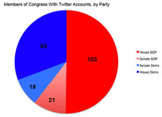 A Congressional Research Service report released last week (and published by Secrecy News) found that 60% of the members of Congress with Twitter accounts are Republicans, and that fully half of all congressional Twitterers are House GOP members. The study, which was conducted in August of last year is limited to U.S. senators and House members, shows GOP pols out-Twittering Democrats in virtually every category: A whopping 67% of all congressional "Tweets" are written by Republicans.