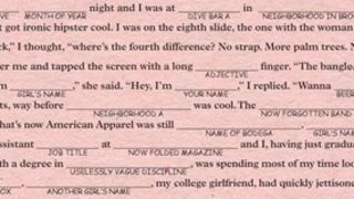 Erstwhile Gawker editor and New York culturist-at-large Joshua David Stein has created, just in time for Valentine's Day, a romantic Mad Lib for our Brooklyn bobo era, complete with prompts for cheap beer, dive bars, and flash-in-the-pan bands.