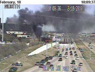 A small plane has crashed into an office building in Austin, Texas, that houses local FBI, CIA, and IRS offices. The scene is 20 miles from the nearest airport, and witnesses say the plane "hit the building full-throttle."