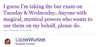 Reformed pill-popper Elizabeth Wurtzel dragged herself out of the "I'm an author" gutter and went to law school at age 40. But then she failed the bar exam. Today, she's taking it again! Good luck Liz! Legalize like a champion!