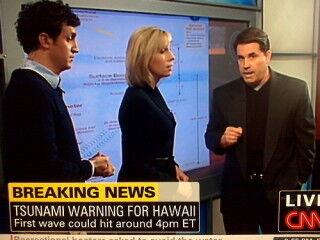Bloggers are now noting CNN's Rick Sanchez, while covering the Chilean earthquake and oncoming tsunami in Hawaii, acted in a manner befitting "an ejaculation that should have been swallowed." If you have video of this, shout. Update! We've got video.