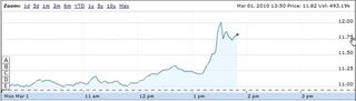 New York Times Co. shares are up more than 8% today on heavy trading. The reason: a rumor going around that Mexican billionaire Carlos Slim might want to take the company private. Wowza. If you know more, email us. UPDATE: