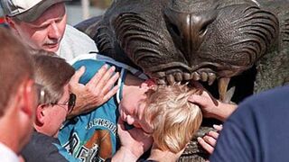 What will become of entrepreneurship? Of capitalism? Of American pastimes? Of old fat white guys lording over their far-flung cow town municipalities thanks to their iron grip on the local football team, the only thing giving meaning to the lives of the poor fucks who live there, in Kansas City or Nashville or, especially, Jacksonville? We as Americans have little else to do except cheer for sports. If sports are in peril, everything is. What else will we do? Art? That's just some guy handing out "handmade discs" when you'd rather have a "disc" called money. Movie night? Sorry, Blockbuster's just about ready to file for bankruptcy, and nobody can figure out how we'll all get DVDs if we cannot walk our ass over to the local Blockbuster store.
