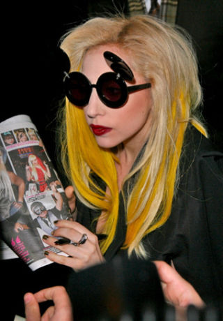 - Lady Gaga is throwing a lawsuit right back at ex-boyfriend ex-producer Rob Fusari, the one who claims he invented her, named her, and deserves $30M for co-writing her songs. Gaga's lawyers says Fusari took advantage of an "inexperienced performing artist" by forcing her into an "unlawful" contract, acting as though he was her agent when in fact he was not licensed to do such a thing. Though I'm more than willing to believe Fusari is a sleaze, I like how this story reveals much about the Genesis of Gaga. In other news, I am newly mixed on the chunks of yellow in Lady Gaga's hair. I was into it as a play on blonde until someone tod me it reminded him of a stripe of dog pee in a field of snow, and now I can't get that out of my head. [NYDN]