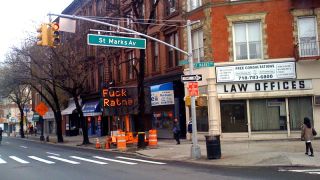 Joe DePlasco, a Ratner spokesman, said, "Some irresponsible prankster apparently thinks it's fun to compromise public safety by hacking into the sign and changing the message. It is not funny. It is serious and offensive and, most importantly, a safety issue. We are reporting the vandalism to the Police Department."[Pic: DuelinMarkers Flickr via FreeWilliamsburg]