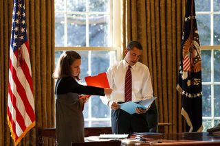 All White House correspondence has to be read by someone, to screen for threats. And every day the staff and volunteers select a handful of letters, faxes, and emails that the president might find interesting. And then a staffer puts that day's ten selections into a folder that the president reads at the end of the day. A couple times a week, President Obama handwrites a brief response to a select few letter-writers on a notecard.