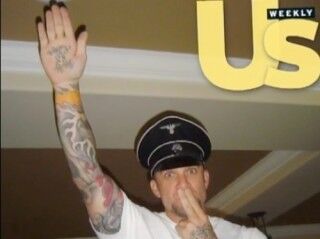 Sandra Bullock's cheating husband says a photo of him wearing a Nazi hat and doing a Nazi salute isn't anti-semitic because the hat was a "gag gift" from a Jew, and he once vacationed on a kibbutz.