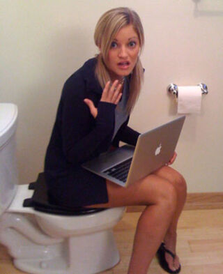 Among the glittery drinkers featured in this article: Mediaite founder @rachelsklar, FourSquare founder @dens, drop.io's @sorayad, deposed Business Insider editor @carney, and "vice president of emerging trends at MobileBehavior" Alice Mooney, whose Twitter handle I cannot find, although if I saw her I would know it, because she "wore a necklace with her Twitter handle spelled out in sterling silver"—Carrie Bradshaw of the social networkers. She's the one who said "It's like Cheers, where everyone knows your Twitter handle," so it is with great shame that I admit being unable to find it now. [NYT] [Photo of @iJustine tweeting on the toilet for illustrative purposes only. She is not at Tom & Jerry's. Maybe she wishes she was.]