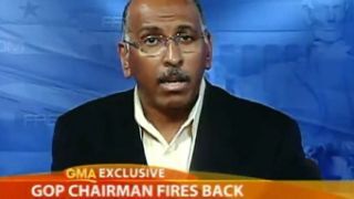 Steele, looking particularly dope on Good Morning America today in one of those blazer w/o tie esembles that Obama and Ahmadinejad popularized, answered truthfully and reasonably when asked if he thought he had a "slimmer margin for error" as RNC chairman because he's black. "Yes," he said, and he added that the same was true for Barack Obama. Then his answer went off the rails a bit.