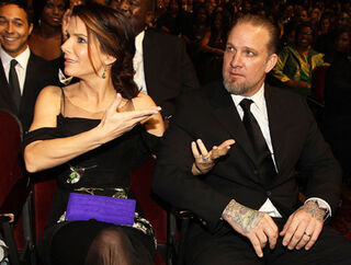 - Sandra Bullock's public shaming continues. Apparently the reason why she hasn't filed divorce yet is because she is afraid that cheating husband Jesse James will go mental and spill all her secrets. What those secrets are, no one is sharing, but we bet it has something to do with the sacrifice she made to the devil to make a mediocre movie like The Proposal into a gigantic hit. Things aren't going so great for Jesse, who is back in sex rehab. Now there are rumors that James made more than twelve sex tapes featuring him in Nazi regalia getting it on with a bunch of different fräulein floozies. Still, his lawyer says that he loves his wife "more than anything in his life," including his tattoos and his prized Luger gun collection. While James is out in the doghouse trying to get his life straight, Sandy B has the help of her famous celebrity friends like, um, George Lopez. He stopped by the star's house yesterday to see how she was doing and to offer his services if she needs them. He knows people. People who could make very bad things happen, to very bad people. [Radar Online, Ibid, People, E! Online]