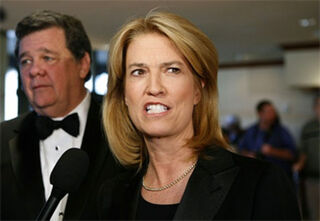 Greta! Greta van Susteren. Her father was a close friend of Joe McCarthy. Her husband is an advisor for Sarah Palin. Anyone who watches her show (or reads her hilarious blog) knows she totally wants to gay marry Sarah. (And Todd!)