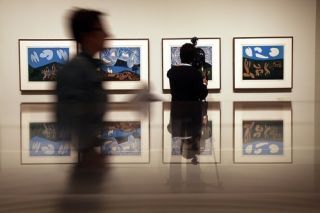 [An appropriately abstract reflection of a man photographing the upcoming "Picasso in the Metropolitan Museum of Art" exhibit at a preview today. Image via Getty]
