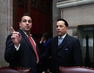 Espada (pictured, above, to the right of girlfriend-slashing criminal former Senator Hiram Monserrate, his good friend) has a nonprofit called Soundview that is supposed to provide health care to poor people, but all it actually does is employ Espada's entire extended family and pay the rent on the Bronx apartment that he pretends to live in.