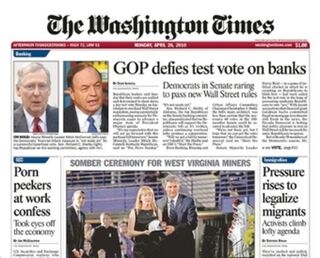 The Washington Times has historically been a loony Moonie conservative paper, yes, but it has also historically employed plenty of good reporters, so it's worth pulling for. It's easy to take this latest news of the president and publisher's abrupt firing as just another craaaaaaaaaazy Moonie management mishap. But upon further inspection it sounds like the board of directors was actually protecting the paper's editor from a publisher who wanted to run shit. Which is not allowed, in real newspapers. According to the WaPo, Jonathan Slevin, the canned publisher, was fond of " asserting the right to be involved in editorial decisions and news meetings." Not allowed! Huzzah for firing corporate overlords run amok!
