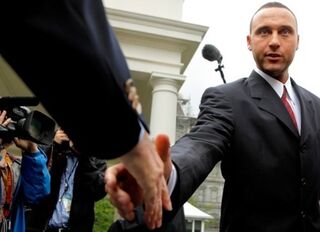 [New York Yankee Derek Jeter wore a solid blue suit to the White House today where he attended an event celebrating the team's World Series victory. Image via Getty]
