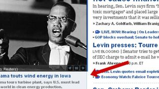 It appears Obama and Malcolm X were actually slated for separate stories. The error has since been repaired. Here is what they meant to do: