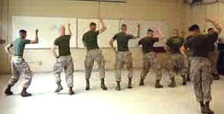If the homoerotic element interests you, look no further. In this video, the mortars of HHC 1-21 march, thrust, and grab each others' crotches while lip syncing, "Oooh, you touch my tra-la-la." Oddly enough, this is the only video I saw with a female soldier. (She doesn't do the dance.) When the boys break into an exuberant glow stick rave session at the end, we are reminded that, yes, these men really are as young as eighteen.