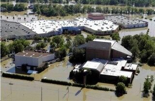 Here's the world famous Grand Ole Opry House, which—like the rest of Nashville—is now soaking in flood water. Sakes alive! The Tennessean has complete coverage. [Pic: AP]