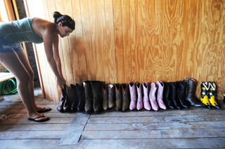 [A Nashville clothing store owner sets out some of the city's signature cowboy boots to dry after they were immersed in the flood waters that still plague parts of the city. Image via Getty]