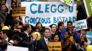 Turns out, none! Or, all! Unless something weird happens, no party will have a majority, even though the Conservatives picked up a ton of seats. This is a big disappointment for Tory leader David Cameron, who was supposed to lead his party into a brave new era of not being unlikeable rich people. But it's an even bigger disappointment for Nick Clegg, Britain's Barack Obama, who was not very much like Barack Obama to begin with, and is now even less like Barack Obama, since Barack Obama is known for winning. In fact, the only person who is maybe not that disappointed is Labour's Gordon Brown, except that it would only because his party didn't get as thoroughly owned as was expected, and besides, Gordon Brown just sort of seems like the kind of guy who is always disappointed.