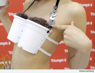 Japan, the land of completely normal things, has invented a bra that's also a small rice farm. Bra manufacturer Triumph has created the over-the-shoulder-boulder-holder because "young Japanese women have taken a tremendous interest in agriculture." Suddenly, so have the men!