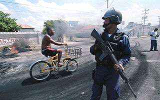 After declaring a state of emergency over the weekend, the fighting between Coke's gang, the Shower Posse, and the government has continued into a new phase. Today, security forces stormed his stronghold in the Tivoli Gardens area of Kingston, backed by helicopters, and are meeting stiff resistance. The BBC also reports that violence is spreading to other parts of the city, where Coke is regarded by many as a community figure who offers more support and social services than the Jamaican government. One Kingston resident, Suzanne, told the BBC: