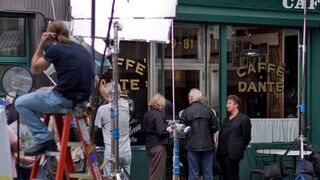 [Things got heated on MacDougal Street in the West Village today as Al Pacino (far right) filmed a movie outside Caffe Dante. Image via Jens Schott Knudsen's Flickr]