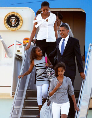 [You're not the only one looking forward to relaxing this weekend. Air Force One dropped off the first family in Chicago yesterday afternoon. Image via Getty]