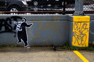 A sticker of this image was found at Reagan National Airport last week, prompting DHS officials to ask law enforcement agencies who might be responsible. Artist Rene Gagnon told Wired, "Those are spray-paint cans on my chest, not bombs."