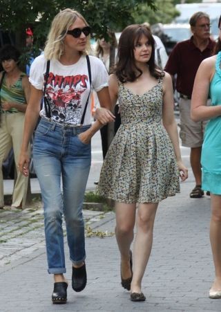 [Chloe Sevigny stops by the East Village set of her "Big Love" costar Ginnifer Goodwin's movie "Something Borrowed." Image via Splash]