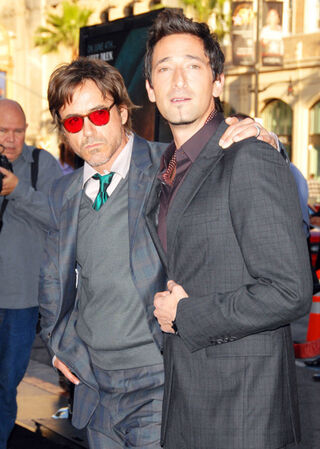 [Robert Downey Jr. and Adrien Brody commit above-the-neck crimes of fashion at the premiere for 'Splice.' Image via Retna Digital.]