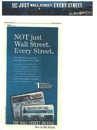 The NYT found out that the WSJ had apparently ripped off its slogan, "Not Just Wall Street. Every Street" for some ad. Which is really fucked up because, hello, the whole reason they made up that slogan was to make the WSJ look bad! Way to rain on the marketing parade, WSJ! As a consequence, the NYT's lawyer has just fired off the following cease and desist letter. Can you feel the warrior spirit in the air? Feel it!