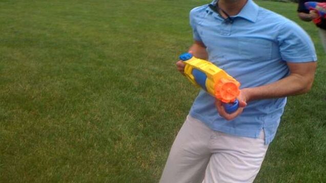 God, what we would give to be Rahm Emanuel and Joe Biden. Not because of their jobs, which seem super stressful. But while we were working, they had an awesome squirt gun fight. More summer-fun pics inside.