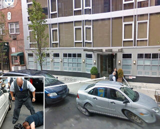Ponzi schemers to the stars Kenneth Starr and Andrew Madoff (son of Bernie) both live at 433 E. 74th Street, or "Ponzi Palace." No wonder their one-punch doorman is such a thug. He's even in Ponzi Palace's Google Street View.
