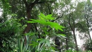In Union Square, to be exact. Some seeds were either deliberately planted or tossed to the ground during joint-rolling and now this weed-looking plant has sprung up in the park. An editor at High Times thinks it's the real deal.