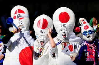 [Good thing the World Cup is a soccer competition, and not a "dress like a goddamn maniac" competition, because otherwise, the Japanese would already have won and we'd all have to go home. Pic via Getty]