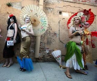 [Participants in the 2010 Mermaid Parade at Coney Island yesterday. Each year, people dress up in crazy costumes and march as an homage to the old Coney Island Mardi Gras.] (Pic via Getty)