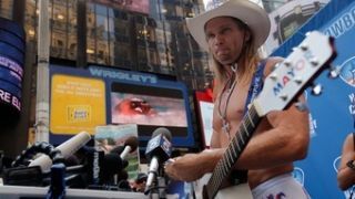 The Naked Cowboy has a trademark on his fake name and claims that Sandy Kane—who has toured the local comedy circuit for years and once lit her tits on fire on public access television—is infringing on it. He wants her to pay $5,000 a year to "franchise" the Naked name. Seems sad, but one other performer already has a deal with the Cowboy (ne Robert Burck) so that she can have legal rights to call herself the Naked Cowgirl. Sandy says that Burck may have the trademark, but she's been doing her naked act far longer than he's been in his BVDs strumming for the pocket change of fat Floridians. If he can slap her with a cease-and-desist letter, can all of Manhattan get a restraining order against the Naked Cowboy?