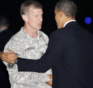 Oh sure, why not speculate: things do not look happy for Bud Light Lime lover Stanley McChrystal, huh? Note how Obama is very clear that no matter which general is in charge, the point is that we must Win Afghanistan. Actually he doesn't even go that far ā he just says the goal is to stop Al Qaeda from harming Americans. Take that as an acknowledgment of the war in Afghanistan's dim prospects. Jesus. Ugh. We'll see what happens tomorrow, after the terribly awkward Obama-McChrystal meeting.