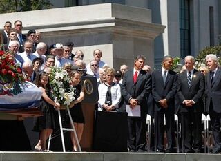 [Barack Obama, Joe Biden, Bill Clinton and half of the U.S. Senate dutifully attend Sen. Robert Byrd's memorial service today at the Charleston, West Virginia state capitol. This is totally screwing up their four-day weekend plans. Image via AP]