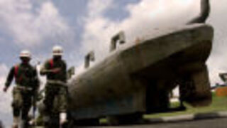 The diesel powered "narco sub" was found yesterday in a small stream in Ecuador, near the border with Colombia in a joint Drug Enforcement Agency-Ecuadorean operation. One man was arrested. According to the AP: