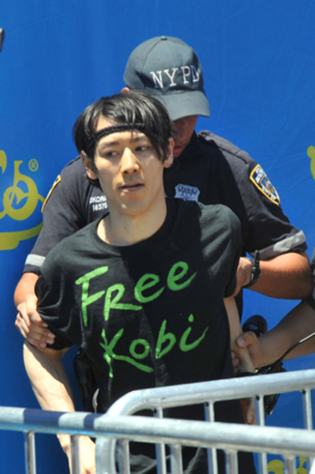 Hot dog eater Takeru Kobayashi was released from jail in Brooklyn today following his arrest for crashing yesterday's Nathan's Hot Dog Eating Contest. He plead not guilt to charges of resisting arrest, obstruction of governmental administration, disorderly conduct, and trespassing.