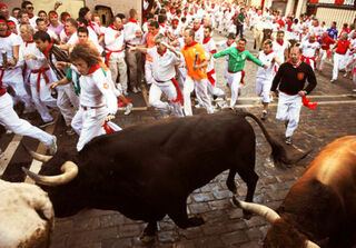 Life, after all, has become more harrowing in recent years. We have invented roller coasters, horror films, 3-D movies, and Jersey Shore with the specific goal of terrorizing ourselves. Shouldn't there be scarier things than a pack of tortured bovines? Other things that would be fun to watch chasing strapping lads down the streets of Pamplona: