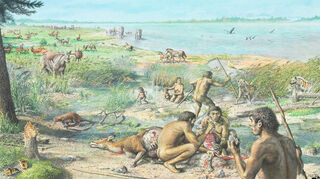 It would be the oldest site of human occupation that far north, and possibly the oldest site in all of Europe. Though there weren't any actual remains, the scientists are speculating that the species in question was one with a "smaller brain, strong brow ridges and big teeth" called Homo antecessor, also known as "pioneer man" or "Wayne Rooney." That up there is a photograph of the early humans, taken using the time-traveling camera known as "art."