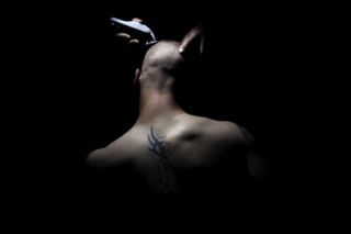 [A soldier from Bravo Company, 2nd Battalion of the 508 Parachute Infantry Regiment of the 82nd Airborne, has his head shaved by the light of a flashlight at Combat Outpost Ware in the Arghandab Valley, outside Kandahar. Pic via AP.]