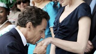 [French President Nicolas Sarkozy kisses his wife Carla Bruni during Bastille Day celebrations in Paris. Bastille Day, or Quatorze Juillet, is like the Fourth of July, but in France. And on the 14th. Pic via AP]