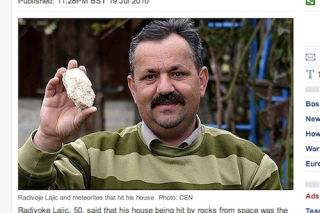 Why have six meteorites hit the house of 50-year-old Radivoke Lajic over the last six years? "I am obviously being targeted by extraterrestrials," he said. Obviously. Lajic says he doesn't know what he's done "to annoy them." [Daily Telegraph]