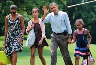 The Obamas will spend an August weekend vacationing on the Gulf Coast. Jesus, don't they know how oily it is there? Anyway, this comes before their real vacation to Martha's Vineyard, nicely defusing the inevitable "snobby vacation" criticism. [Image: AP]