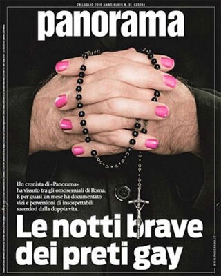The Italian-language magazine, Panorama, is running a cover story this week called "Gay Priests' Nights on the Town," which has caused a firestorm in Italy and, not surprisingly, infuriated Roman Catholic officials. The diocese is now calling on priests who are gay to step forward and "reveal themselves."