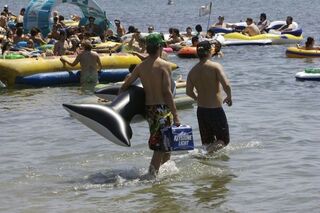 City officials in San Diego, tired of drunk frat boys littering their pristine coast, in 2007 banned drinking on the beach. But there's a loophole: "If you're floating, you're good," according to police. So thousands get wasted on rafts, brah.
